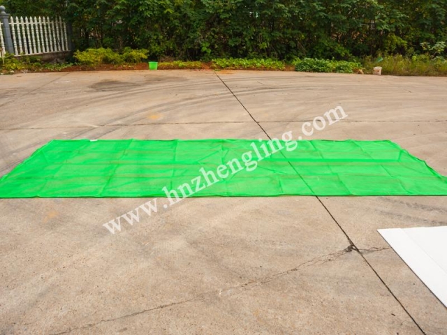 安裝要求:平網要能承受重100KG底面積為2800平方厘米的模擬人形沙包沖擊后,網繩、邊繩、系繩都不斷裂(允許筋繩斷裂),沖擊高度10米,延伸率不超過1.5米。
